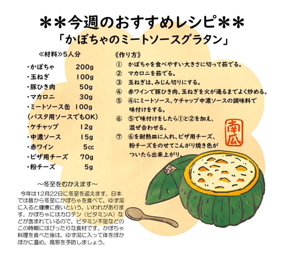 12月 給食献立2025-11-26 お知らせ, 献立12月給食献立予定表⇒ダウンロード25日(木)はクリスマス会でお楽しみ献立になっています! うみ・ほし・うさぎ組さんはご飯はいりません。~*~*~ 都合により献立が変わることがあります ~*~*~